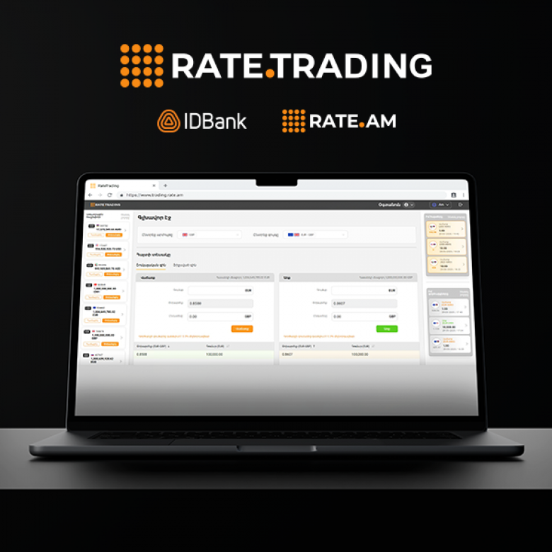 TVПопулярная площадка Rate.am и IDBank объявляют о запуске нового цифрового сервиса, предназначенного для купли-продажи валют быстро, удобно, выгодно- платформу Rate.Trading. Передовое решение позволяет как физическим, так и юридическим лицам безопасно осуществлять сделки онлайн, используя самые выгодные рыночные курсы, формируемые на основе спроса и предложения участников платформы.