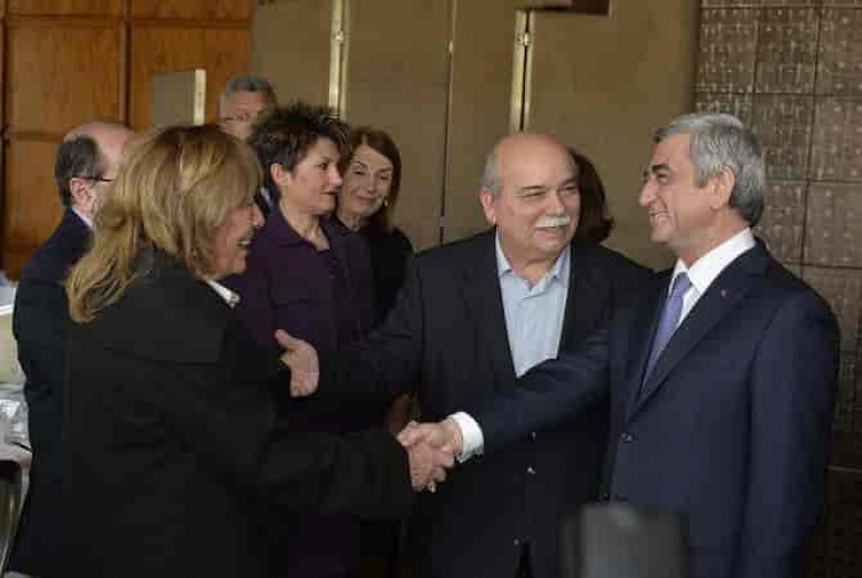 Նշելով, որ, Հայաստանի Ազգային ժողովը եվրոպական բազմաթիվ երկրների խորհրդարանների հետ բարեկամական կապերի բարի ավանդույթ է ձևավորել, Նախագահ Սերժ Սարգսյանն այդ տեսանկյունից մեծապես կարևորել է Հունաստանի խորհրդարանում Հայաստանի հետ բարեկամության խմբի վերաձևավորումը, ինչը, նրա համոզմամբ, երկկողմ խորհրդարանական կապերի զարգացման լուրջ խթան է: Հանրապետության Նախագահը առանձնահատուկ ընդգծել է երկու բարեկամ երկրների խորհրդարանների սկզբունքային դիրքորոշումների կարևորությունը միմյանց համար զգայուն հարցերում: Այդ համատեքստում Նախագահ Սարգսյանը երախտագիտություն է հայտնել Նիկոս Վուցիսին և ի դեմս նրա` Հունաստանի խորհրդարանին, որը առաջիններից մեկը ճանաչեց Հայոց ցեղասպանությունը, իսկ նախանցյալ տարի օրենք ընդունեց Ցեղասպանության ժխտումը քրեականացնելու մասին: ՀՀ Նախագահը նշել է, որ հունահայ համայնքի և Հունաստանում գործող հայկական ավանդական կազմակերպությունների ներկայացուցիչները ևս իր հետ ունեցած հանդիպմանը խնդրել են այդ կապակցությամբ իրենց անունից շնորհակալություն փոխանցել Հունաստանի խորհրդարանի նախագահին և պատգամավորներին` հիշեցնելով, որ այս տարի լրանում է Հունա ստանի կողմից Հայոց ցեղասպանության ճանաչման 20-ամյակը: