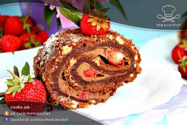 Օրվա բաղադրատոմս .Շոկոլադե ռուլետ սրճային կրեմով