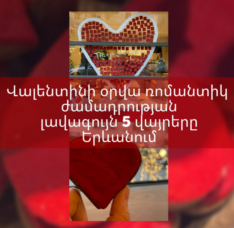 LifeՄոտենում է տարվա ամենառոմանտիկ օրերից մեկը՝ Սուրբ Վալենտինի օրը։ Չնայած իսկական սիրահարների համար ամեն օրը տոն է երկուսի համար, փետրվարի 14-ը մնում է այն ամսաթիվը, երբ շատերը սկսում են փնտրել հանգիստ, մտերիմ երեկո։ Մենք հավաքել ենք տեղական հաստատությունների հինգ առաջարկներ, որոնք այս օրը ռոմանտիկ երեկոյի տարբեր տարբերակներ ունեն՝ մտերիմ ընթրիքից մինչև ավելի աշխույժ մթնոլորտ։