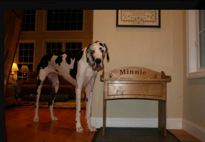 LifeՄիննին գերմանական դոգ է, որն իր տերերի՝ Քեն եւ Լիզա Նոգաչեկ ամուսինների հետ ապրում է Միացյալ Նահանգների Նորթ-Սթոնինգթոն քաղաքում։ Միննիին Նոգաչեկ ամուսինները վերցրել են իրենց տուն, երբ դեռ երկու ամսական էր։ Կյանքի առաջին տարում արդեն շունը զգալիորեն մեծացել էր չափսերով։ Երկու եւ կես տարեկանում շունն այնքան խոշոր չափերի էր հասել, որ երբ պառկում էր, գրավում էր ողջ բազմոցը։ Քենն ու Լիզան սպասում են, մինչեւ կենդանու աճը դադարի եւ դիմում Գինեսի ռեկորդների գիրք՝ 2025 թվականին, երբ շունը դառնում է 3,5 տարեկան։ Կենդանու հասակը հասնում է մոտ մեկ մետրի։ Շունը սիրում է երկարատեւ զբոսանքները, խաղում է ֆրիսբի, իսկ ամենից սիրելի խաղալիքը՝ դեղին գնդակն է, որը հաճախ կարելի է տեսնել նրա բերանում։