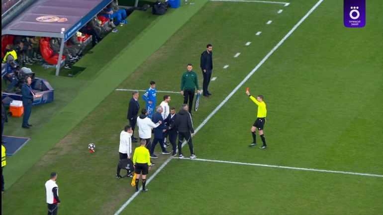 Կրքերը չհանդարտվեցին նաև խաղավերջում: 86-րդ րոպեին «Բենֆիկայի» գլխավոր մարզիչ Ժոզե Մոուրինյուն հեռացվեց տեխնիկական գոտուց: Պորտուգալացի մասնագետը նախ դեղին քարտ ստացավ մրցավարի հետ վիճելու համար, սակայն չդադարեցրեց բողոքները, ինչի արդյունքում Ֆրանսուա Լետեքսիեն նրան ցույց տվեց կարմիր քարտ: