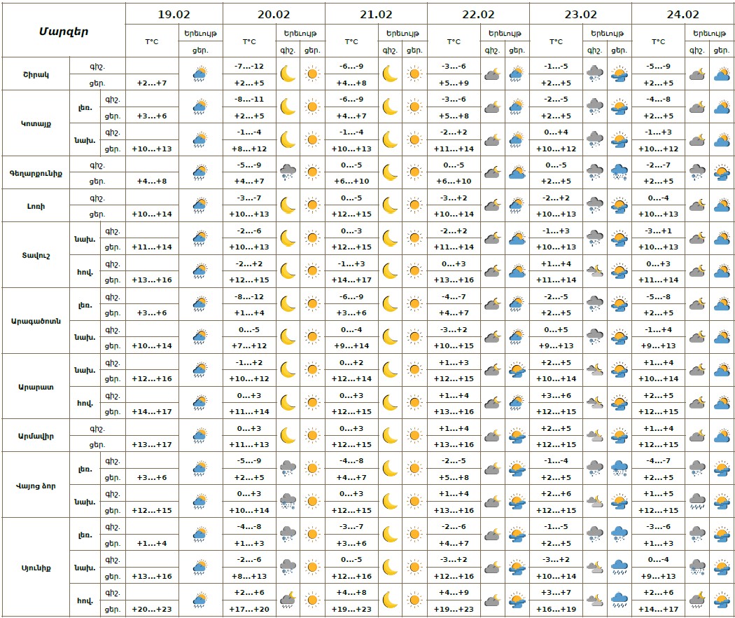 ԱՌԱՋԻԿԱ 5 ՕՐՎԱ ԵՂԱՆԱԿԻ ԿԱՆԽԱՏԵՍՈՒՄ (19.02-24.02.2026թ.)