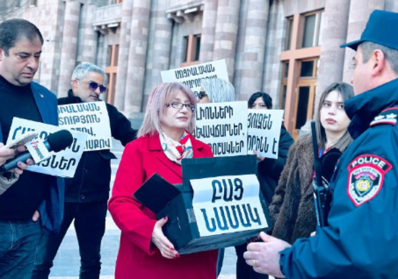 Սև արկղով բողոքի ակցիա ՀՀ կառավարության դիմաց Blog 5 Մարտ, 2026 14:09 Կիսվել «Համահայկական ճակատ» շարժման տելեգրամյան ալիքը գրում է. «Համահայկական ճակատ» շարժման անդամները նորից բարձրաձայնում են միլիոնների պարգևավճարների և ընտրություններին ընդառաջ թոշակների բարձրացման մասին: Կիսվել