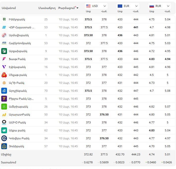 Ի՞նչ փոխարժեքներ են սահմանվել այսօր՝ ապրիլի 10-ին