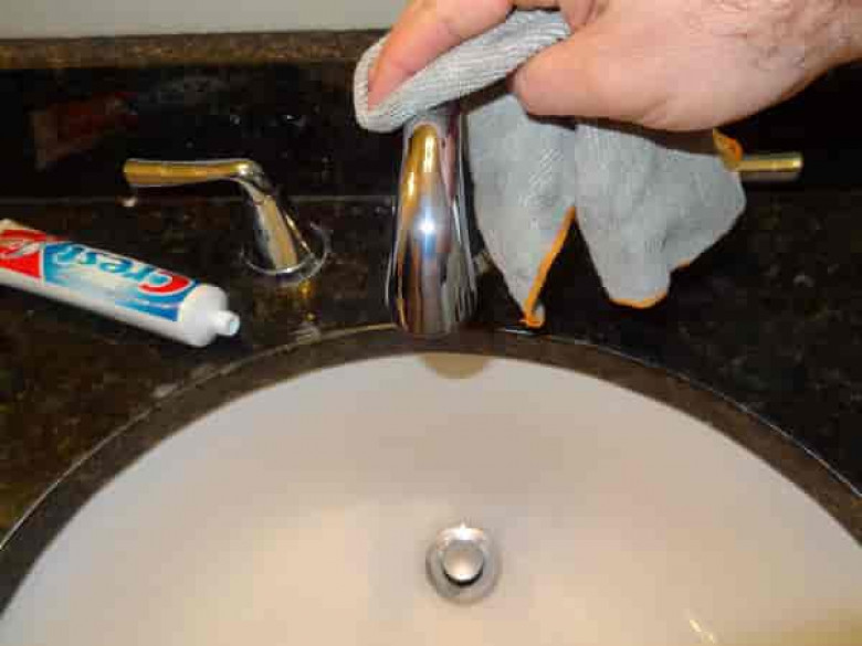 Սպունգի վրա լցրած մի փոքր ատամի մածուկը կստիպի շողալ քրոմապատ ծորակը: