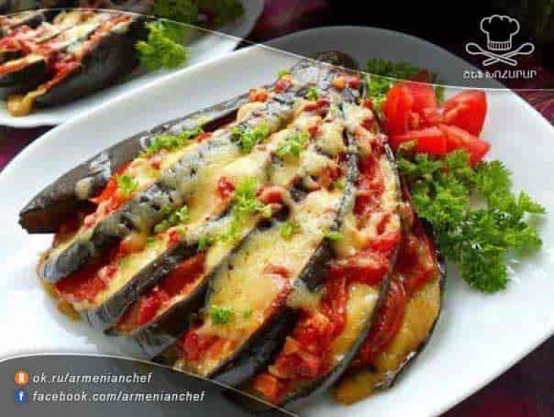 - Վրան շաղ տալ քերած պանիրը, այնուհետև կրկին եփել ջեռոցում 5րոպե, որպեսզի պանիրը հալչի: