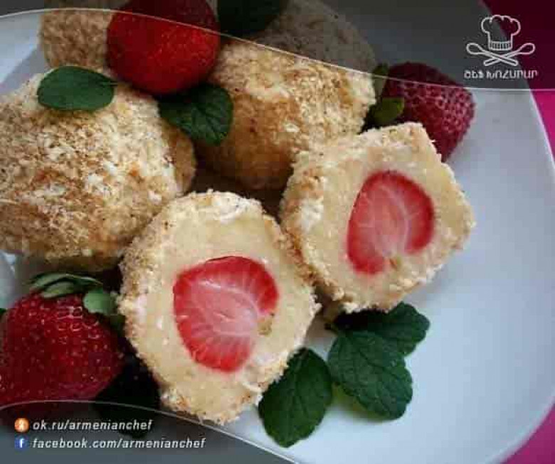 Ելակի միջուկով ռաֆաելլո պատրաստելու հետաքրքիր և շատ հեշտ տարբերակ: