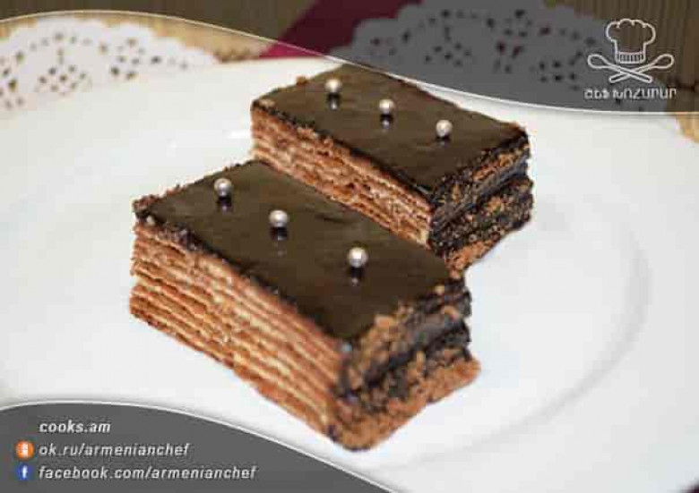 - Պատրաստի տորթը ուղղանկյունաձև կտրատում ենք և մատուցում։ Բարի ախորժակ։