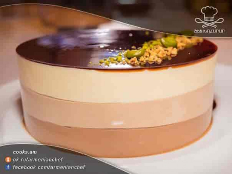 Մեր պատրաստած «Երեք շոկոլադ » տորթն առանց ժապավենի այսպիսի տեսք ունի։ Համաձայնեք, որ գեղեցիկ է, դե իսկ համի մասին չենք խոսում