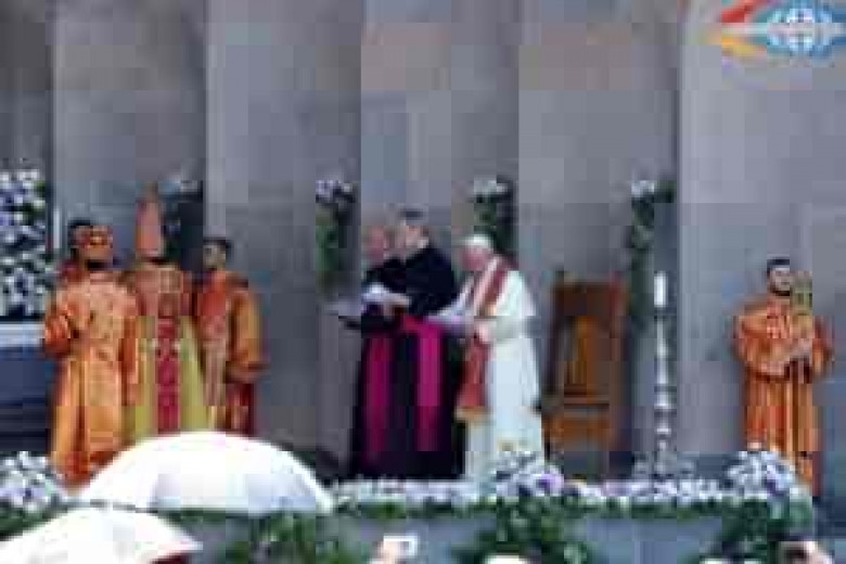 Այս սրբատեղիից կրկին սփռվի ճաճանչափայլ լույսը. այս երկրի լուսավորիչին՝ ձեր Ավետարանի Հոր՝ Սուրբ Գրիգորի հավատի լույսին միանա սիրո լույսը, որ ներում և հաշտվում է: Ինչպես Առաքյալները Զատկի առավոտը, տարակուսանքով և անվստահություններով հանդերձ, վազեցին հարության վայրը, նոր հույսի երջանիկ արևագալից դյութված (հմմտ. Յվ 20,3-4), նույնպես մենք ևս, այս սուրբ Կիրակի, հետևում ենք Աստծո կանչին՝ կատարյալ միության, և արագացնենք մեր քայլերը: Իսկ այժմ, Սրբություն, Աստծո անունով, խնդրում եմ, որ Ինձ օրհնեք, օրհնեք Ինձ և Կաթողիկե Եկեղեցին, օրհնեք մեր այս ընթացքը՝ դեպի կատարյալ միություն»։