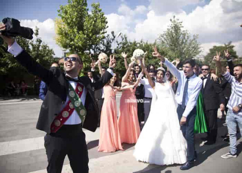 Զույգը պահպանել է հայկական հարսանիքի ավանդական երթուղին: Խորանի առջեւ միմյանց հավերժ սիրելու խոստում տալուց եւ ամուսնական մատանիներով փոխանակվելուց հետո նրանք ստացել են ներկաների շնորհավորանքներն ու ուղեւորվել նորափեսայի տուն, իսկ այժմ էլ հյուրերի հետ իրենց միությունը նշում են երեւանյան ռեստորաններից մեկում: