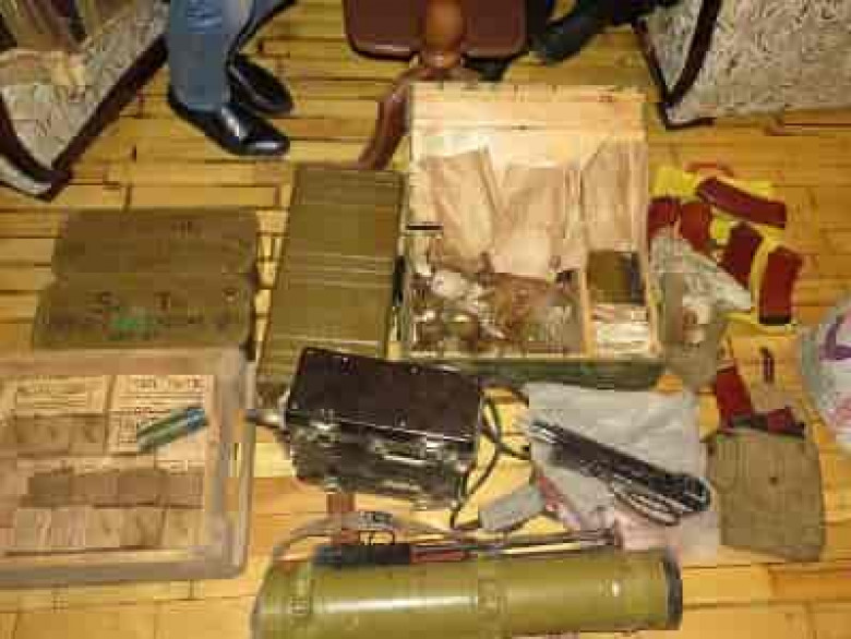 «Մասնավորապես, առգրավվել եւ փորձաքննության են ուղարկվել շուրջ 6000 հատ փամփուշտ, 15 հատ նռնակ, նռնակի ճայթիչներ, տրոտիլ պայթուցիկ նյութեր, կապսուլ-դետոնատորներ, ազդանշանային հրթիռներ, ինքնաձիգի լիցքավորված փամփշտակալներ, հակատանկային ականանետ, ռադիոկապի միջոց, ականորսիչ եւ այլն: