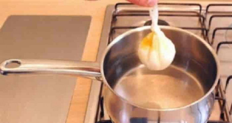 Ձուն արագ եփելու համար անհրաժեշտ է այն դնել տոպրակի մեջ, կապել և դնել ջրի մեջ։ Ընդամենը 1 րոպե հետո արդեն ձեր նախաճաշը պատրաստ կլինի։