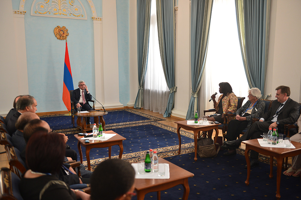 Հանդիպմանը Սերժ Սարգսյանը ներկայացուցիչներից հետաքրքրվել է իրենց երկրներում այդ ուղղությամբ տարվող քաղաքականության և տվյալ ոլորտում փորձի մասին:
