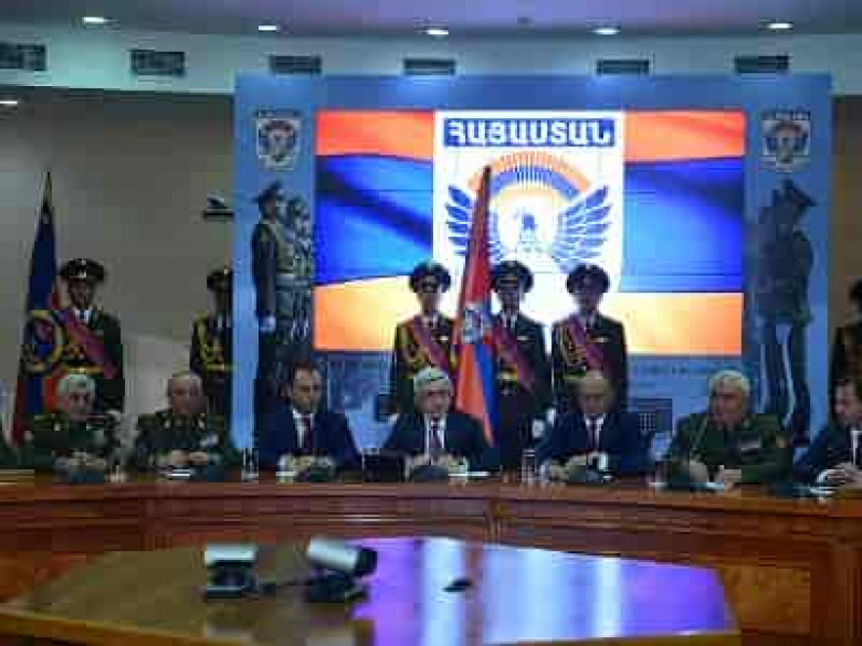 ՔաղաքականությունՀՀ Նախագահ, զինված ուժերի գերագույն գլխավոր հրամանատար Սերժ Սարգսյանն այսօր այցելել է Պաշտպանության նախարարություն եւ բանակի բարձրագույն սպայական կազմին ներկայացրել պաշտպանության նորանշանակ նախարար Վիգեն Սարգսյանին եւ Զինված ուժերի գլխավոր շտաբի նորանշանակ պետ Մովսես Հակոբյանին: Հանրապետության Նախագահն անդրադարձել է նաեւ այն հանգամանքներին, որոնք հաշվի է առել այդ որոշումները կայացնելիս: Այդ համատեքստում Սերժ Սարգսյանը հանգամանորեն խոսել է նոր Սահմանադրությամբ պաշտպանության նախարարի, նախարարության եւ ԶՈւ գլխավոր շտաբի դերակատարության մասին մեր երկրի պետական կառավարման համակարգում: