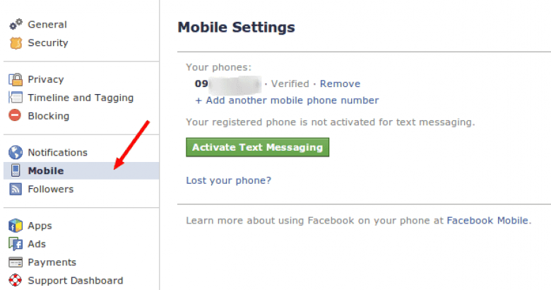 3. Գնում ենք ՖԲ settings>>mobile եւ ավելացնում ենք ձեր բջջային հեռախոսը։ Սա թույլ կտա հեռախոսը օգտագործել անվտանգության մեջ։