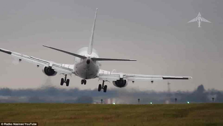 Տեսանյութում երևում է՝ ինչպես է ինքնաթիռը դեպի աջ «շպրտվում» օդային ուժգին հոսանքի կողմից, երբ փորձում է իջնել թռիչքուղու վրա: Այնուհետև այն տատանվում ու կրկին օդ է բարձրանում: