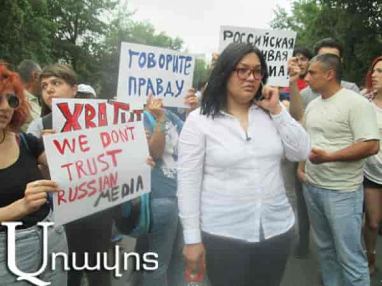 Մի խումբ սադրիչներ (որոնք մտել են քաղաքացիների մեջ եւ որոնց համար իսկապես կարեւոր է ԶԼՄ-ներին, հատկապես՝ ռուսականներին, տեղի ունեցողի անաչառ պատկերը փոխանցել) լկտի կերպով խանգարել են լրագրողի աշխատանքն ուղիղ եթերում»: Ըստ Էլինա Ղազարյանի՝ դրանից հետո լրագրողի մոտ էմոցիոնալ պոռթկում է եղել, որովհետեւ ուղիղ եթերի ժամանակ քաղաքացիները նրա դեմքը փակել են թղթերով եւ ցուցապաստառներով. «Եթերից անմիջապես հետո տեսածից ու լսածից սարսափած Մոսկվայից զանգել է խիստ ղեկավարությունը: