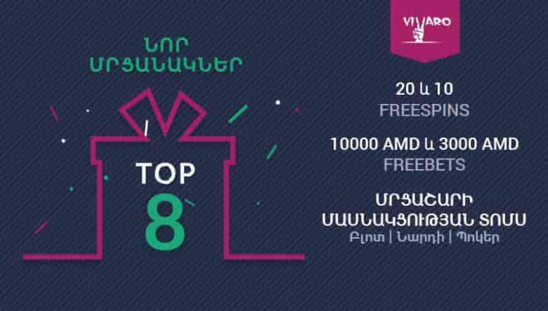 Մրցանակների թվում են՝ անվճար խաղադրույքներ, անվճար սպիներ, ինչպես նաև Բլոտի, Պոկերի և Նարդու մրցաշարերին մասնակցության տոմսեր, որոնք կազմակերպվում են vivarobet.am կայքում:
