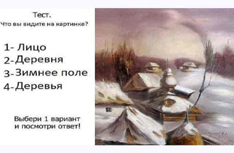 LifeԱռաջին հայացքից լուսնկարը ոչնչով չի առանձնանում, սակայն, եթե ուշադիր նայեք, կարող եք դրանում մի քանի պատկեր տեսնել։ Greatpicture.ru կայքը գրում է, որ լուսանկարի առանձնահատկությունը միայն դա չէ։ Այն նաև յուրօրինակ հոգեբանական թեստ է, որի օգնությամբ ընդամենը մի քանի րոպեի ընթացքում կարող եք իմանալ ձեր իրական կարիքների մասին։ Անհրաժեշտ է ընդամենը նայել լուսանկարին և ֆիքսել, թե ինչ եք առաջինը տեսնում դրանում։