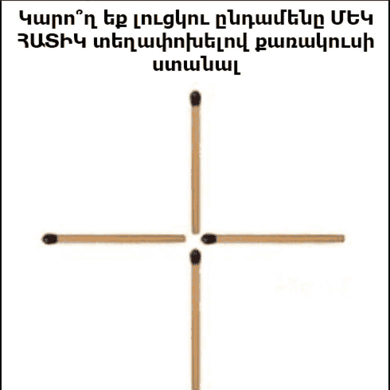 Պետք էր լուցկու հատիկը այնպես տեղափոխել որ «4» թիվը ստացվեր, չէ որ 4-ը 2-ի քառակուսին է