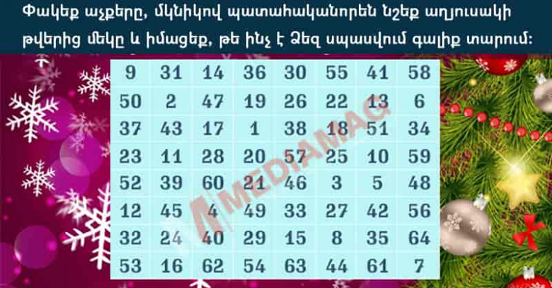 Փակեք աչքերը, մկնիկով պատահականորեն նշեք աղյուսակի թվերից մեկը և իմացեք, թե ինչ է Ձեզ սպասվում գալիք տարում