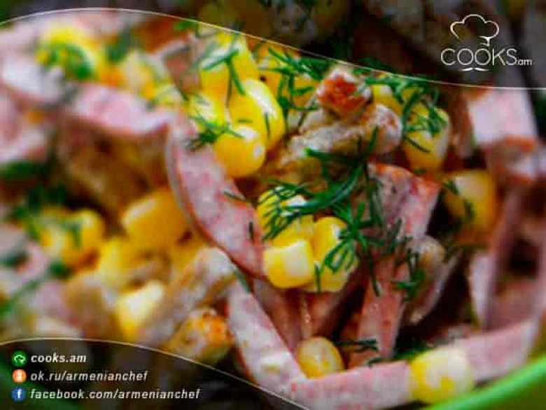 Նման աղցան եգիպտացորենով և չորահացով կարելի է պատրաստել հատկապես երբ ժամանակը քիչ է