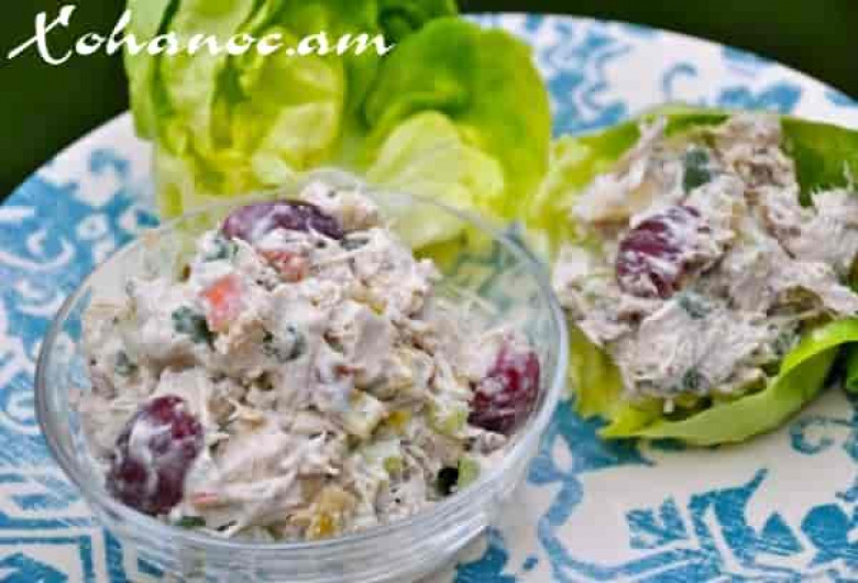 LifeԲաղադրամասեր տավարի միս – 300 գ, նուռ – 1 հատ, սխտոր – 1-2 ատամիկ, ընկույզի միջուկ – 60 գ, թթվասեր – 2 ճ. գդ., մայոնեզ – 2 ճ. գդ., աղ, սև պղպեղ Պատրաստման եղանակը Տավարի միսը խաշել, մանր կտրատել կամ թել-թել անել, ավելի գեղեցիկ կստացվի: Նուռը մաքրել, հատիկներն առանձնացնել, մի քանի հատիկ թողնել զարդարելու համար: Սխտորը մաքրել, ճզմել: Ընկույզի միջուկը մանրացնել դանակով, շատ մանր փշրելու կարիք չկա: Թթվասերը, մայոնեզը, սխտորը խառնել, աղ, պղպեղ անել: Սոուսը լցնել մսի վրա, ավելացնել նռան հատիկները, ընկույզը և խառնել: Զարդարել և մատուցել տոնական ընթրիքին: