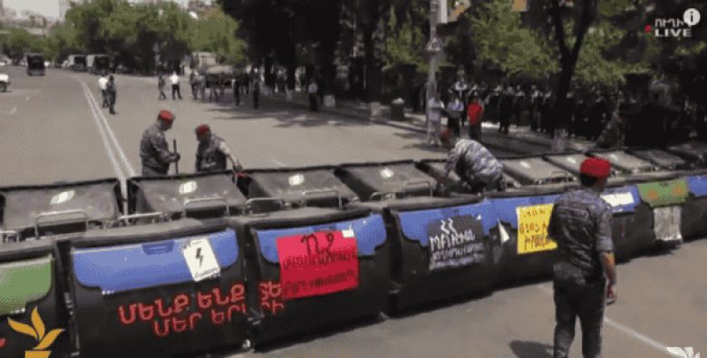 Այժմ ոստիկանական ուժերը տեղափոխում են աղբամանները։