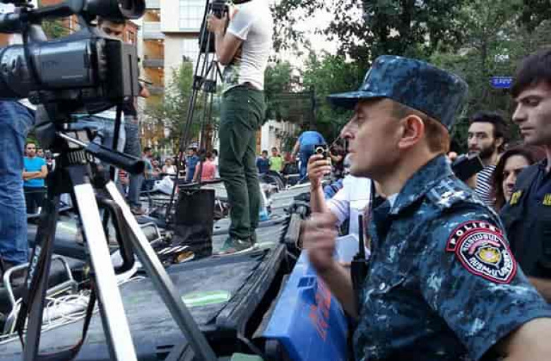 Ազատության հրապարակում հավաքված ցուցարարների հետ զրույցում ՀՀ փոխոստիկանապետ Վալերի Օսիպյանը հորդորեց նրանց երթ չիրականացնել քաղաքում՝ ասելով, որ ոստիկանությունն բավականին ուժեր ունի, որպեսզի կանխի այն: