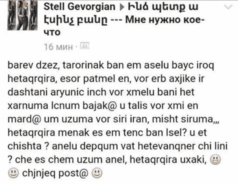Հայուհու մեղմ ասած տարօրինակ հայտարարությունը՝ հայկական խմբում. սա տեսնել է պետք Life 4 Մարտ, 2017 16:22 Կիսվել Կիսվել