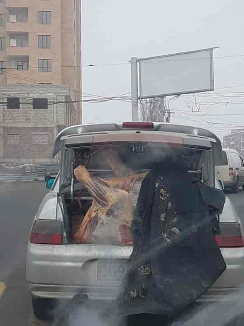 LifeԱյս լուսանկարներն ուղարկել է մեր ընթերցողներից մեկ: Ամենայն հավանականությամբ՝ միսն առաքվում է որևէ խանութ: Դժվար թե իրենց համար նման պայմաններով տեղափոխեին: Սա ևս մեկ անգամ ապացուցում է այն տարածված տեսակետը․ որ Սննդամթերքի անվտանգության պետական ծառայությունն ու խանութների սեփականատերերը բավական անելիք ունեն: