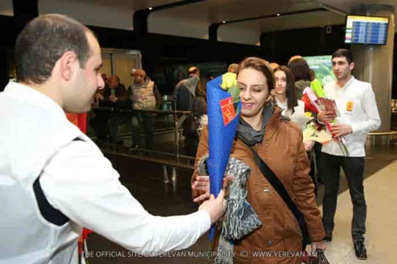 ՀասարակությունԿանանց միջազգային օրվա առիթով Երևանի քաղաքապետարանի շնորհավորանքները մեկնարկել են «Զվարթնոց» օդանավակայանում: Երևան ժամանող բոլոր կանանց և աղջիկներին ժամանման սրահում սպասվում են անակնկալներ: Նրանց դիմավորում են բարձր տրամադրությամբ և նվիրում ծաղիկներ ու շնորհավորական բացիկներ: