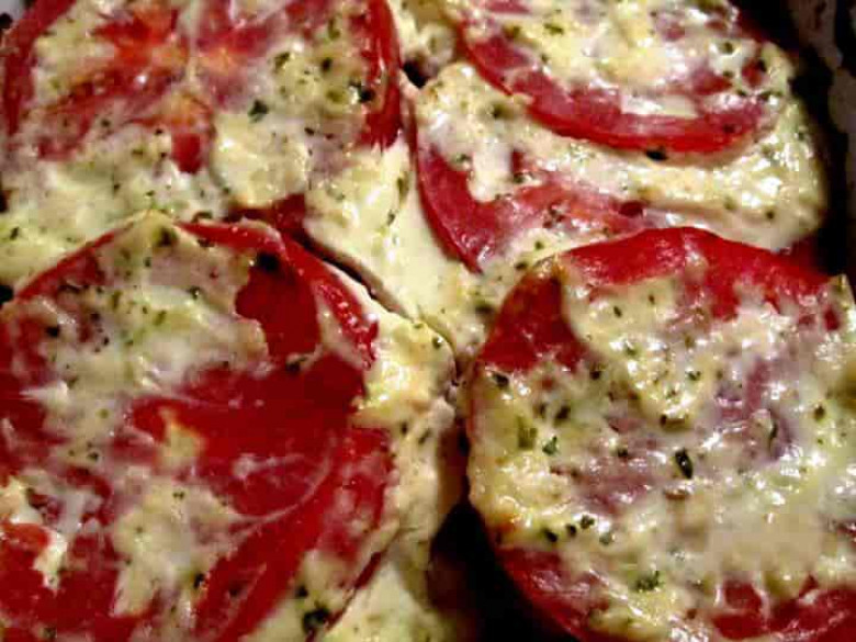 300 գ մակարոնը եփել տուփի վրա նշված ժամանակից 1-2 րոպե պակաս (մոտ 8 րոպե), եփված մակարոնը լցնել ջեռոցի ամանի մեջ, վրան շարել կլոր-կլոր կտրատած լոլիկ, սև պղպեղ ցանել, պանիր քերել, 1-2 պճեղ սխտորը կտրատել, ավելացնել զանգվածին, եթե պանիրը աղի չէ, աղ ցանել և մի փոքր ձեթ լցնել: Այս ամենը բարակ շերտով պատել մայոնեզով, բայց ես խուսափում եմ մայոնեզ շատ օգտագործելուց, ուստի թթվասերի մեջ սխտոր եմ ճզմում և մի փոքր կիտրոնի հյութ եմ ավելացնում: Եփել նախապես 200 աստիճան միացրած ջեռոցում 10- 15 րոպե: Բարի ախորժակ :)