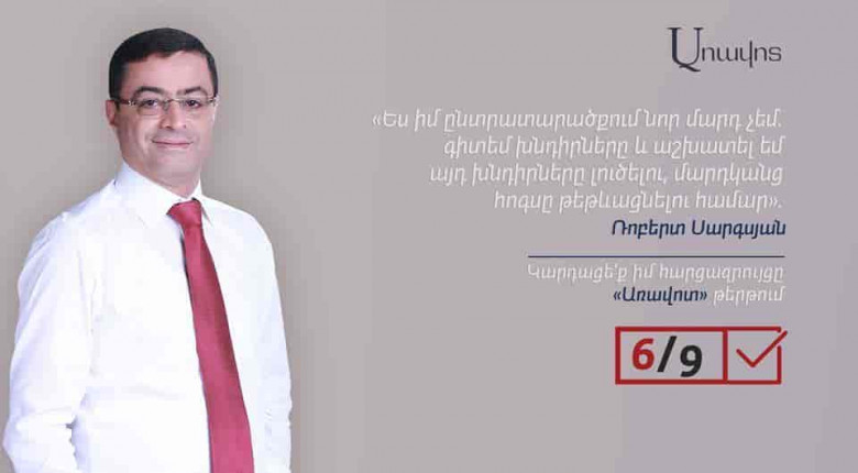 Ես իմ ընտրատարածքում նոր մարդ չեմ. գիտեմ խնդիրները եւ աշխատել եմ այդ խնդիրները լուծելու եւ մարդկանց հոգսը թեթեւացնելու համար.Ռոբերտ Սարգսյան