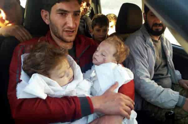Al Jazeera հեռուստաալիքի հրապարակած տեսանյութում պատկերվում է, թե ինչպես է տղամարդը հրաժեշտ տալիս իր 9-ամսական երկվորյակների` Այային և Ահմեդին` նրանց գրկած տանելով ընդհանուր գերեզմանոց, որտեղ հուղարկավորվել են իր ընտանիքի` քիմիական հարձակմանը զոհ գնացած մյուս անդամները: