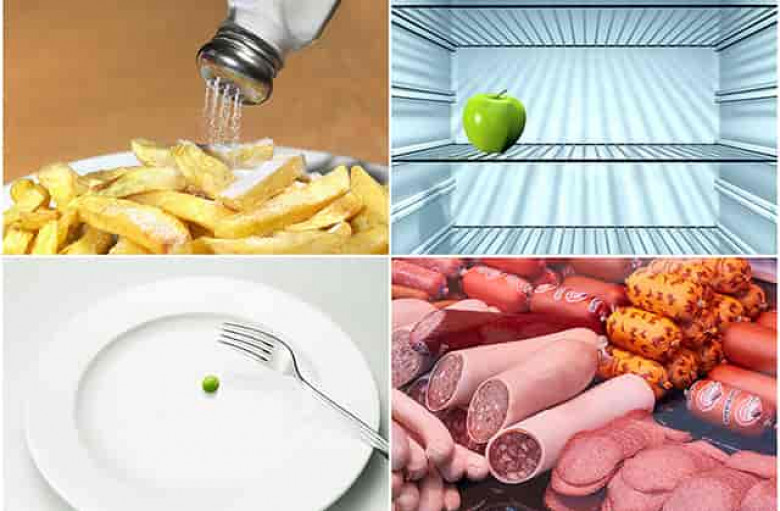 1. Աղի չափազանց շատ օգտագործում։ Աղն օրգանիզմում է պահում ավելորդ հեղուկը՝ մեծացնելով սրտի և երիկամների ծանրաբեռնվածությունը։ Առողջապահության համաշխարհային կազմակերպությունը 7 տարեկանից բարձր երեխաներին և մեծահասակներին խորհուրդ է տալիս օրվա ընթացքում 5 գրամից ավելի աղ չօգտագործել։ Մի մոռացեք, որ բացի ճաշատեսակներին ավելացվող աղից՝ այն պարունակում են նաև մի շարք այլ մթերքներ՝ հաց, թխվածք, կիսաֆաբրիկատներ և այլն։