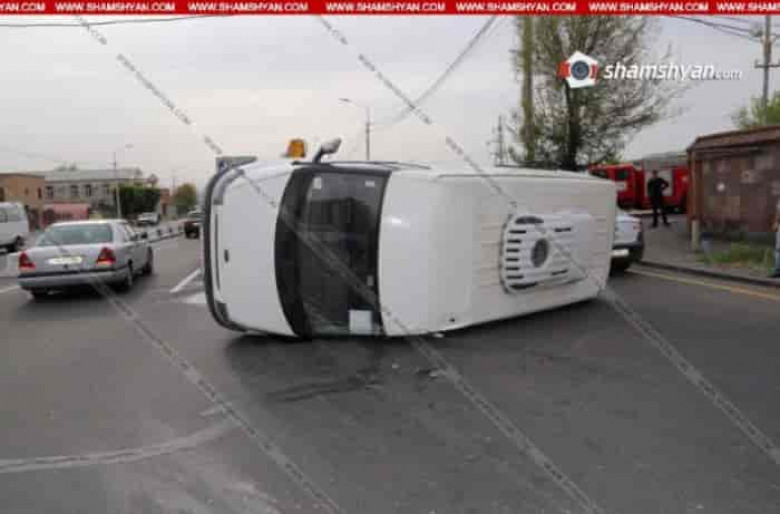 Ավտովթար Ոստիկանության ակադեմիայի դիմաց. Opel-ի ու Ford Transit-ի բախումից հետո վերջինը կողաշրջվել է