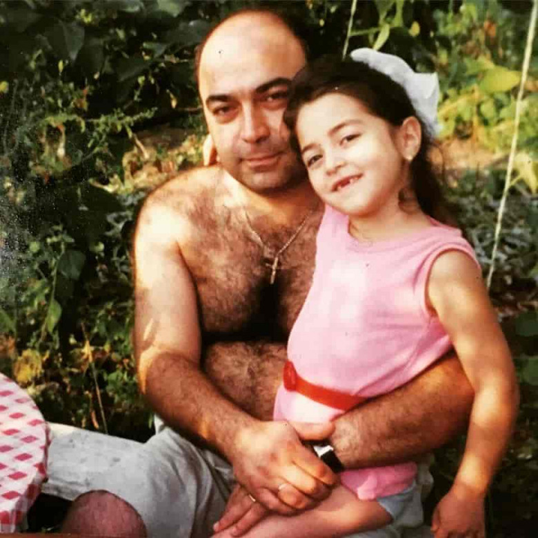 Լուանկարում երգչուհին հոր գրկում է :