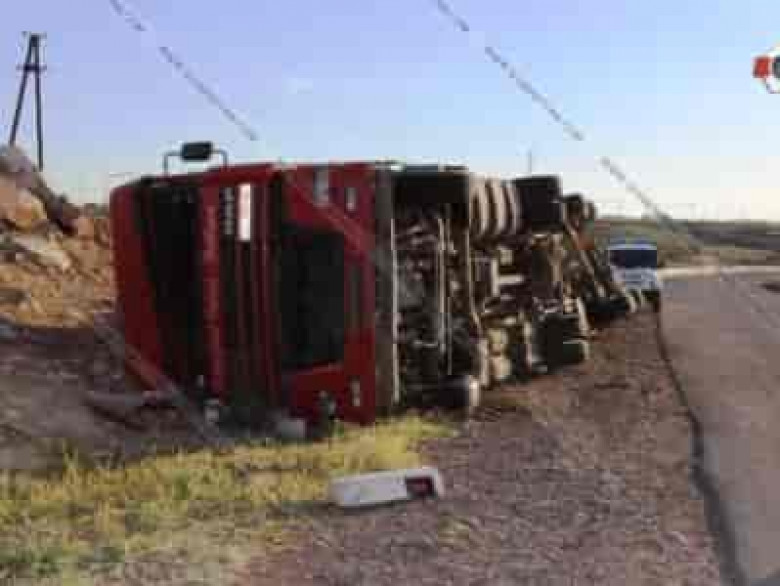 Խոշոր վթար Արմավիրում. Վրաստանի քաղաքացին ДСП-ով բարձված բեռնատարով շրջվել է. նա հիվանդանոցում է (ֆոտո)