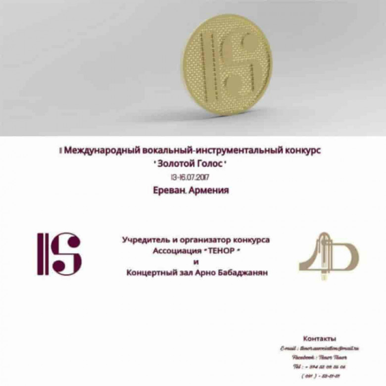 «Տենոր» ասոցիացիան կանցկացնի «Ոսկե ձայն» միջազգային մրցույթը: Այդ մշակութային իրադարձությունը հրաշալի հնարավորություն է առավել ևս երիտասարդ կատարողների համար, որոնք հնարավորություն կունենան հանդիսատեսին ներկայանալ, նոր շունչ ու ճաշակ թելադրել, միաժամանակ ցուցադրելով ձայնային հնարավորություններն ու տաղանդի չափը: