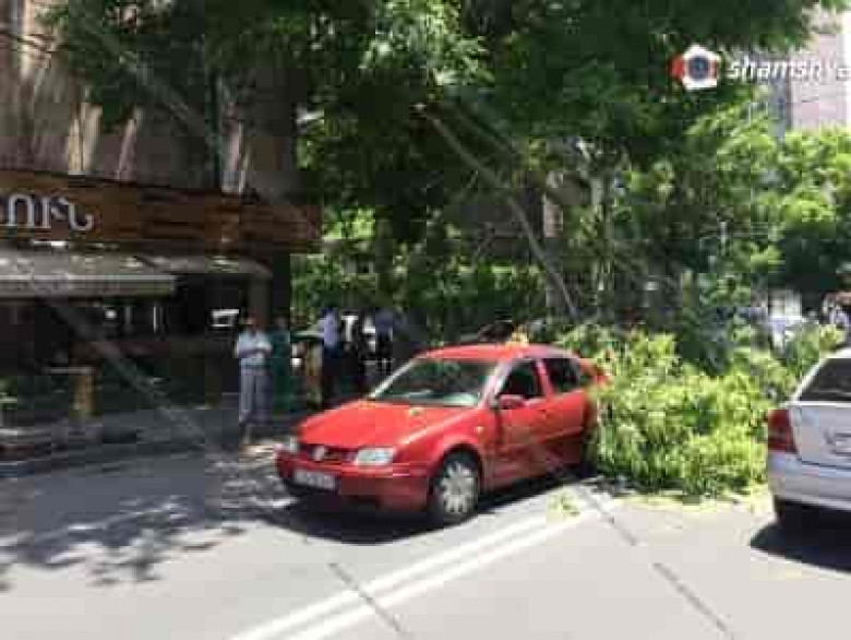 Ոսկու շուկայի մոտ հաստաբուն ծառի ճյուղը պոկվել եւ ընկել է ընթացող Volkswagen-ի վրա (ֆոտո)