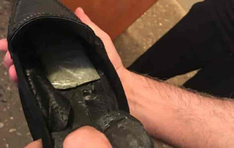 ՀՀ ԱՆ ՔԿՎ հանրային կապերի բաժնից հայտնում են, որ վերջինիս կոշիկի միջից հայտնաբերել են 11,8 գրամ կանաչավուն զանգված: