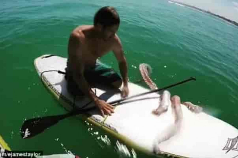 TVԲրիտանական The Daily Mail պարբերականը հրապարակել է ուշագրավ տեսանյութ, որում երևում է՝ ինչպես է ահռելի ութոտնուկն օվկիանոսում իր շոշափուկներով փաթաթվել սերֆինգի տախտակին, որի վրա մարդ կա: