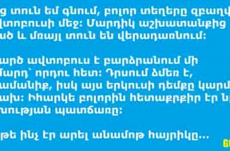 Անամոթ անեկդոտ՝ հոր և որդու մասին, ովքեր ավտոբուսում թուլացրեցին բոլորի փորը, իրենցն էլ միասին