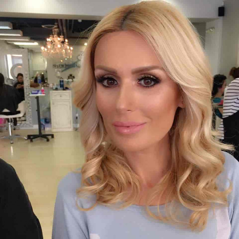 Լուսանկարում երգչուհին կրում է կարճ տոպ և վայելում շամպայն։