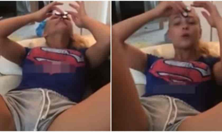 Աղջիկը փորձում է սփիները պտտել քթի վրա, բայց նրա հագուստի պատճառով առաջացած բացվածքը չի թողնի կենտրոնանաք դրա վրա