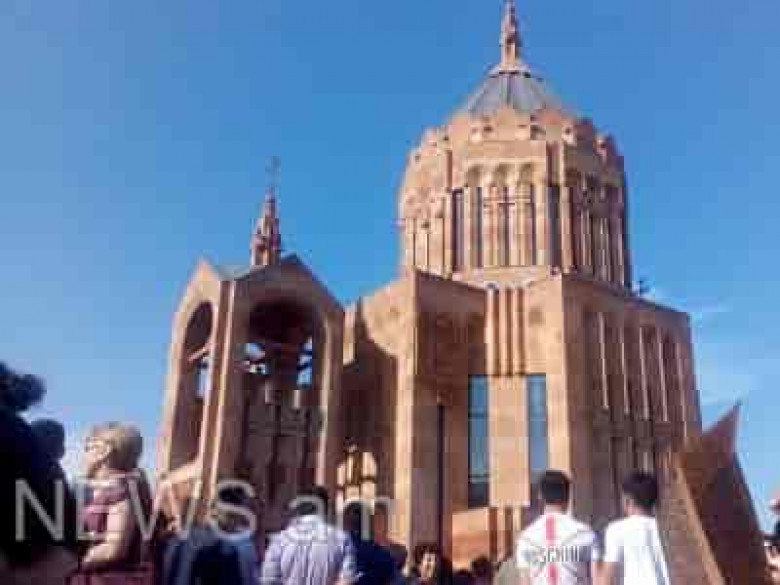 NEWS.am-ի թղթակիցը հաղորդում է, որ Ամենայն հայոց կաթողիկոս Ն.Ս. Օ. Տ. Տ. Գարեգին Բ կաթողիկոսի մասնակցությամբ:եկեղեցու օծմանը ներկա են գործարարներ, պատգամավորներ, մարզաշխարհի ներկայացուցիչներ: Այստեղ են նախկին ԲՀԿ-ական Վարդան Օսկանյանը, Սամվել Ալեքսանյանը, Ռուբիկ Հակոբյանը, Խաչատուր Սուքիասյանը, Գյումրիի քաղաքապետ Սամվել Բալասանյանը, ԲՀԿ–ական պատգամավորներ, Իրանի եւ Ռուսաստանի դեսպանները։ Այս պահին նորակառույց եկեղեցում պատարագ է մատուցվում, իսկ բակում հավաքված են հարյուրավոր քաղաքացիներ: