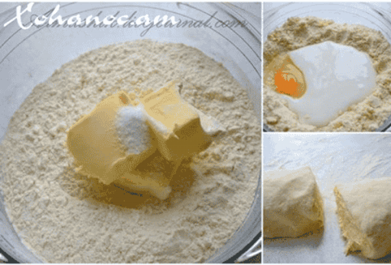 Խորիզ-Հալած յուղ 2 ճաշի գդալ, 1բաժակ շաքարավազ,ու այնքան ալյուր,մինչև միատարր ու փխրուն զանգված դառնա: